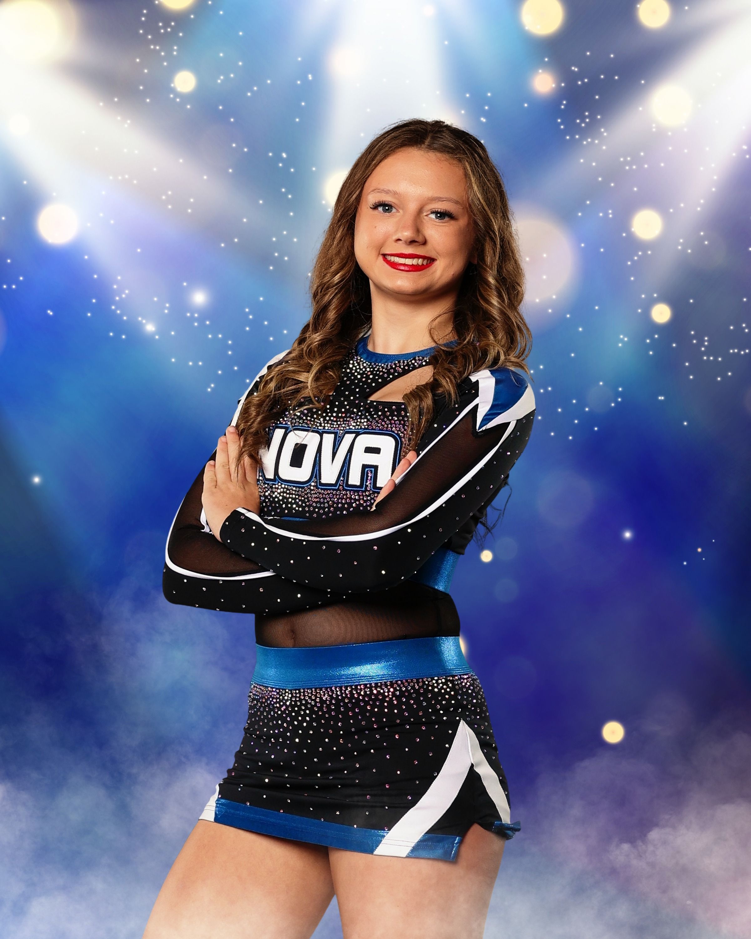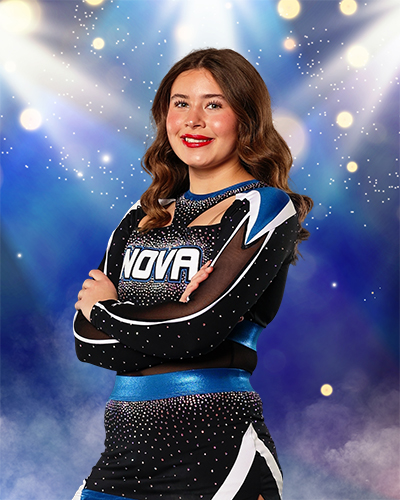 Evva has been a part of the NOVA family since the gym first opened five seasons ago. Her commitment, leadership, and passion for the sport have made her a strong role model both on and off the mat. She has a natural ability to connect with younger athletes, and she takes pride in sharing her knowledge, experience, and love for cheerleading to help them grow and succeed.